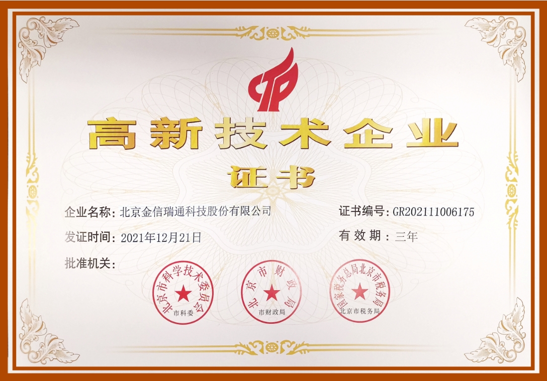 5月20日,北京金信瑞通成功加入中關村高新技術企業(yè),并榮獲...